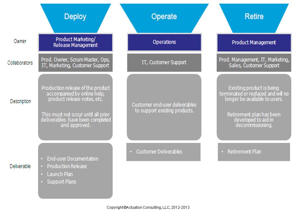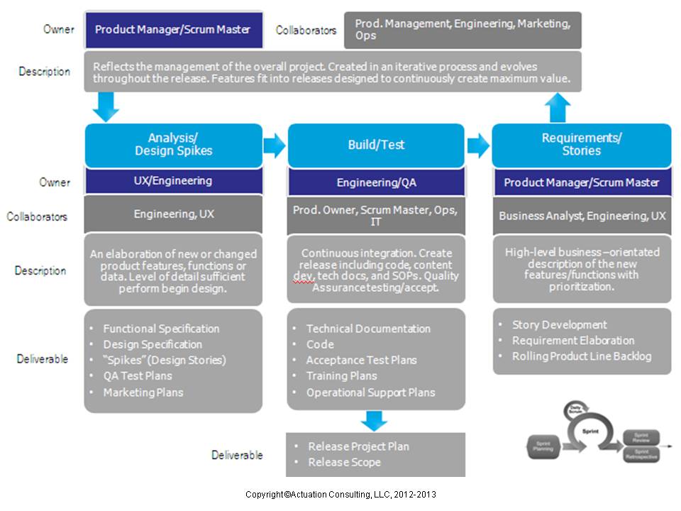 The completed process (Figure 4) was meant to show everyone involved in the production process (roles, linkages, and deliverables) post release. Product development can’t just be about delivering code. It has to be more about commercializing the product. Whatever process you use, it’s critical that each participant understand the overall process, their role, and what’s expected of them.